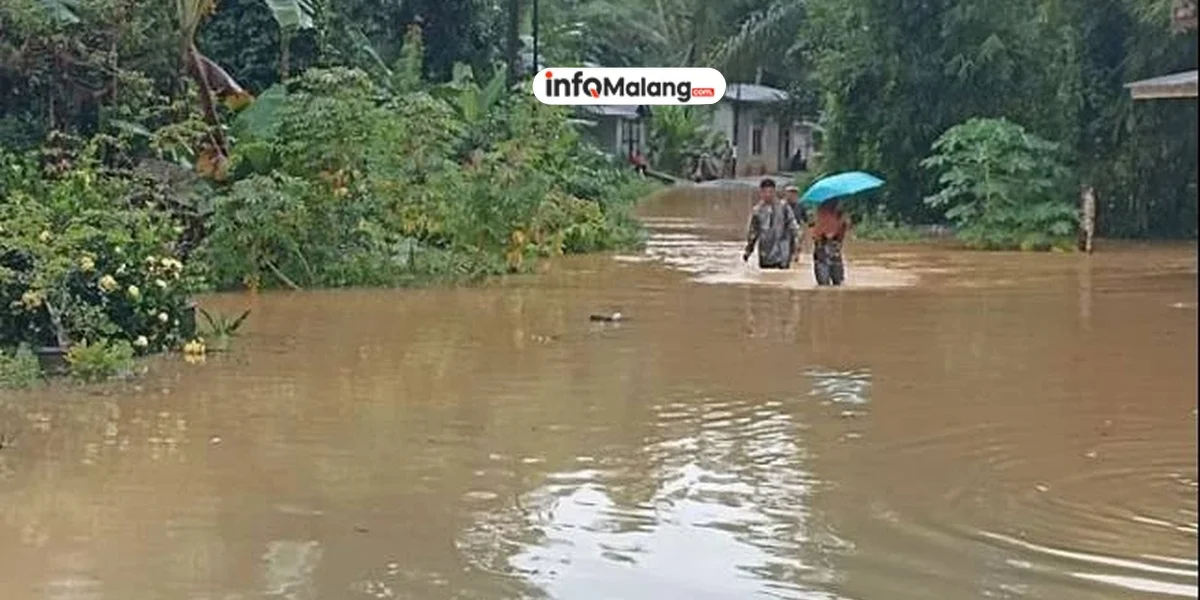Kepala Pelaksana BPBD Jawa Timur, Gatot Soebroto, meninjau langsung lokasi banjir di Kampung Raas, Dusun Sendang Biru, Desa Tambakrejo, Kecamatan Sumbermanjing Wetan. Banjir di daerah ini mencapai kedalaman hingga 1,5 meter, membuat aktivitas warga terganggu. “Kami mendapati saluran drainase tersumbat material sampah yang menyebabkan aliran air terhambat,” kata Gatot saat inspeksi. Bersama tim dan perwakilan pemerintah daerah, Gatot juga memantau saluran menuju Pantai Tambakrejo dengan perahu karet untuk memastikan langkah penanganan tepat.