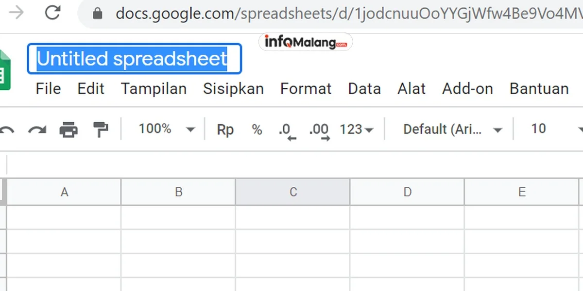 Berikan judul untuk dokumen spreadsheet Anda agar mudah dikenali kemudian.