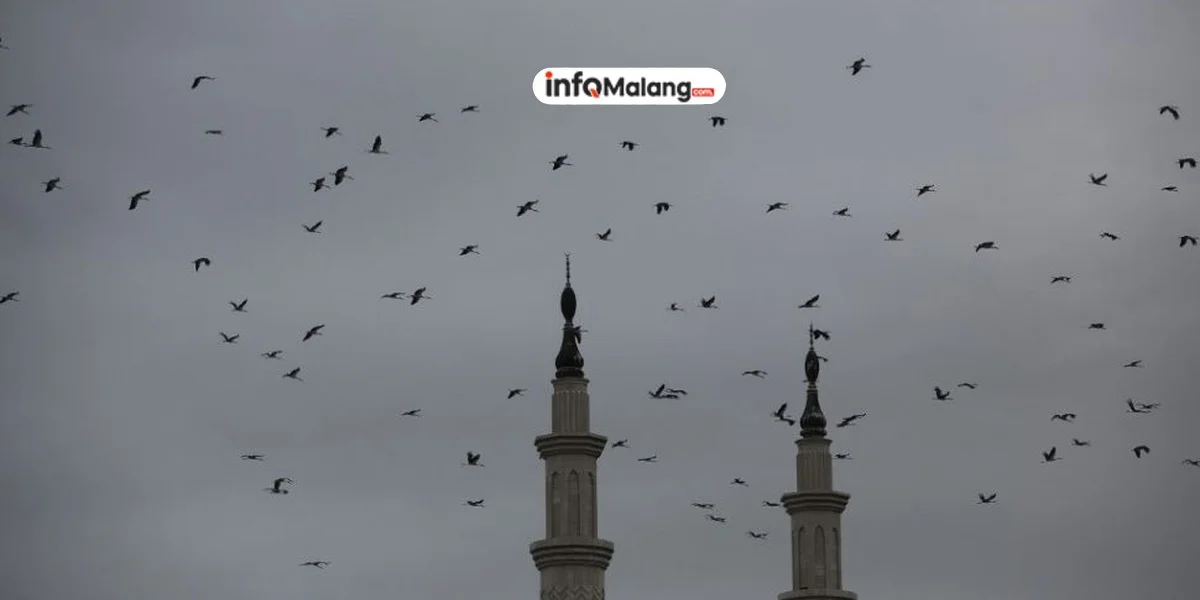 Ratusan burung terlihat memenuhi kabel listrik di kawasan Dinoyo, Malang, pada Minggu malam (8/9/2024). Kejadian ini menarik perhatian warga setempat, mengingat jumlah burung yang diperkirakan mencapai lebih dari 500 ekor.